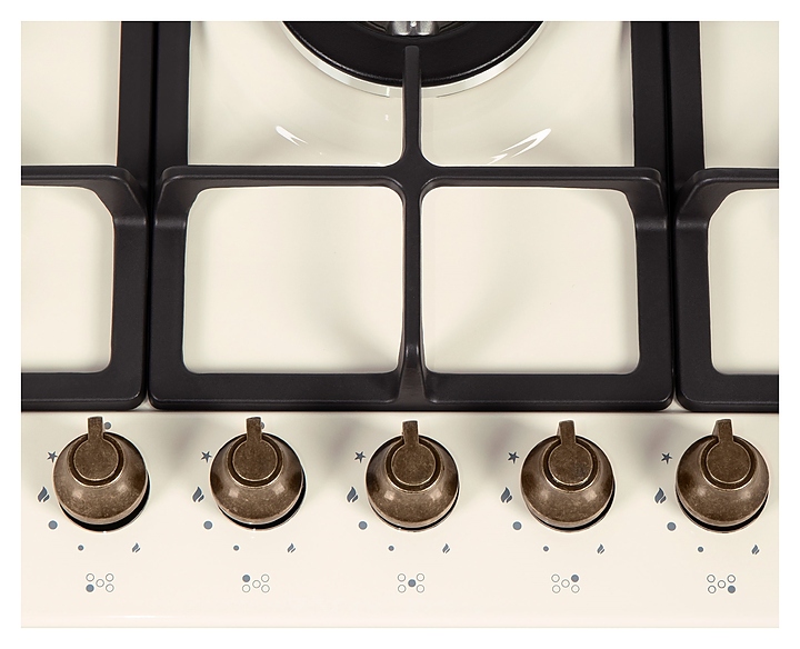 Варочная панель газовая Maunfeld EGHE.75.33CBG2.R/G бежевая с ретро фурнитурой