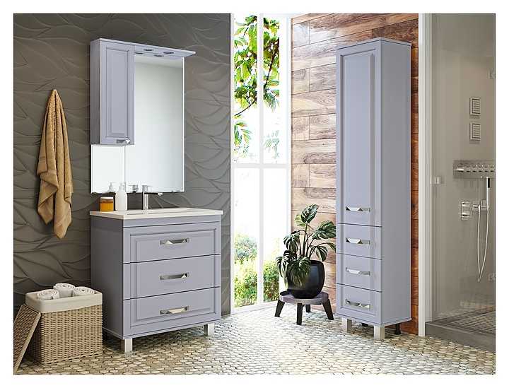 Шкаф зеркальный Misty Терра-70 70х100 см с подсветкой, левый, серый