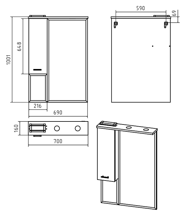 Зеркальный шкаф Misty Терра-70 популярной российской компании выполнен в современном стиле и прекрасно впишется в интерьер любой ванной комнаты. Благодаря подвесной конструкции модель не занимает много места, что позволяет экономить пространство, а также облегчает уборку. Модель оснащена встроенной светодиодной подсветкой, закрытым отделением с распашной дверцей, розеткой и выключателем, расположенными внутри шкафчика. Корпус изделия выполнен из ЛДСП, которая отличается влагостойкостью, прочностью, устойчивостью к перепадам температурных режимов, способностью сохранять цвет и форму изделия в первозданном виде длительный срок, фасад - из МДФ с покрытием эмалью. Комплектация:
