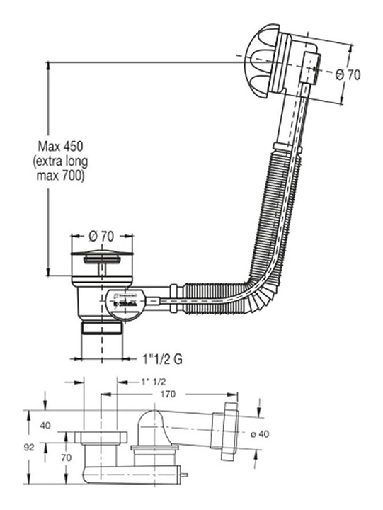 Слив-перелив Bonomini 4027WZ50B7WZ предназначен для установки с ваннами. Сливная труба оснащена накидной гайкой. Малая заглушка и перелив выполнены из металла. Дополнительные характеристики: