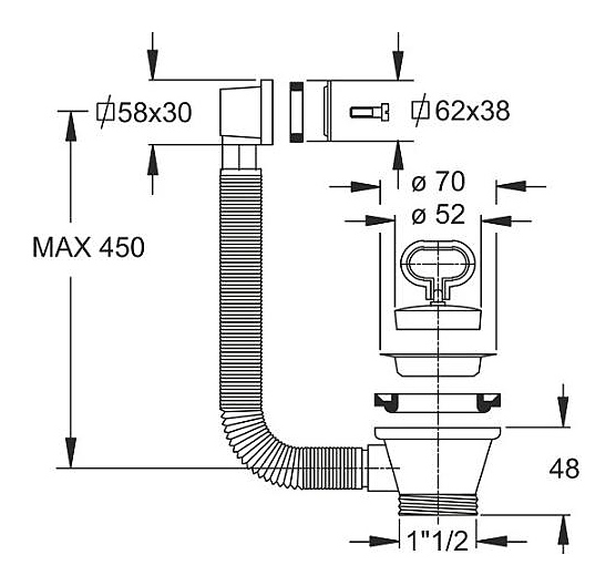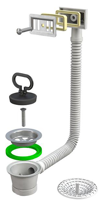 Слив-перелив Bonomini 1943MG64B0WZ предназначен для установки с кухонными мойками. Модель оснащена пробкой с ручкой и решеткой. Дополнительные характеристики:
