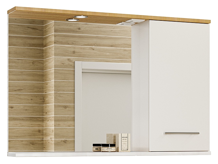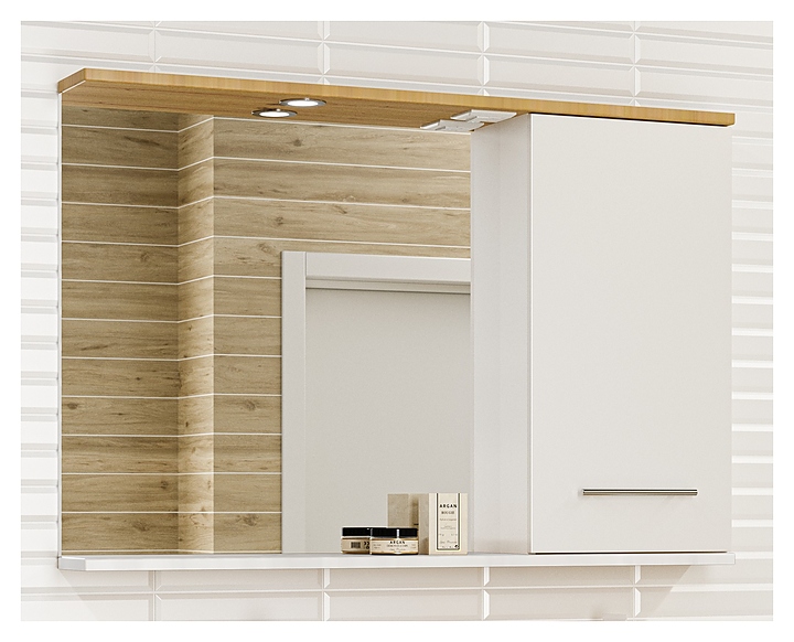 Шкаф зеркальный Misty Респект-120 118х80 см с подсветкой, правый, дуб артизан