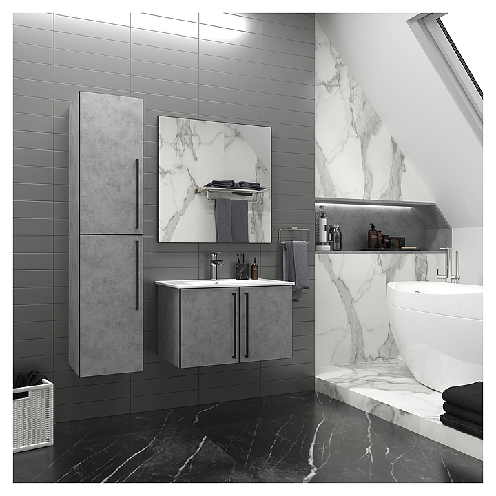 Тумба под раковину Misty Rock-60 58,4х40,5 см, подвесная, бетон светло-серый