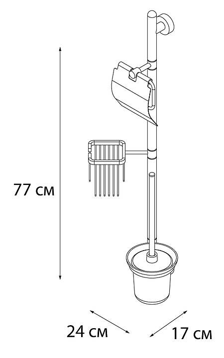 Стойка Fixsen FX-61225 предназначена для размещения в туалетных комнатах. Модель оснащена ёршиком для унитаза, держателем для освежителя воздуха и держателем для рулонной туалетной бумаги. Элегантные аксессуары этой коллекции идеально дополнят дизайн любой ванной комнаты. Изделие выполнено из качественного металла цвета хром, отличается долгим сроком службы, простым уходом и идеально экономит пространство за счет мультифункциональности. Дополнительные характеристики: