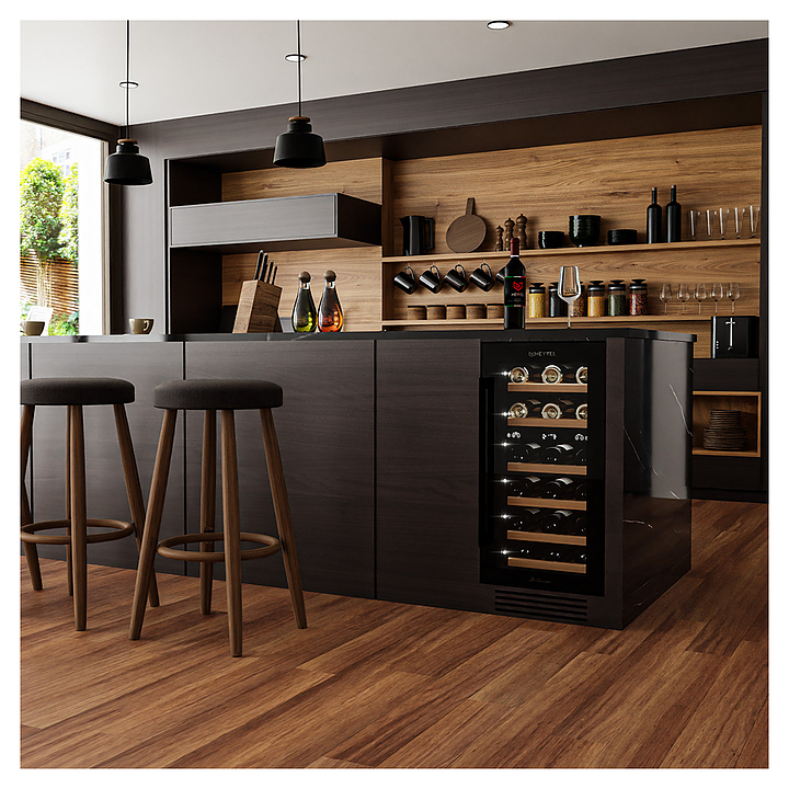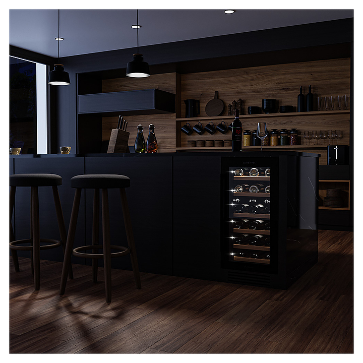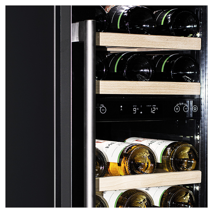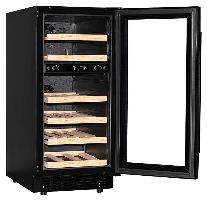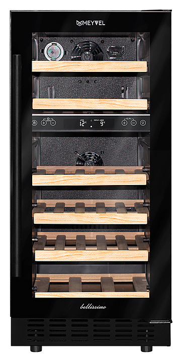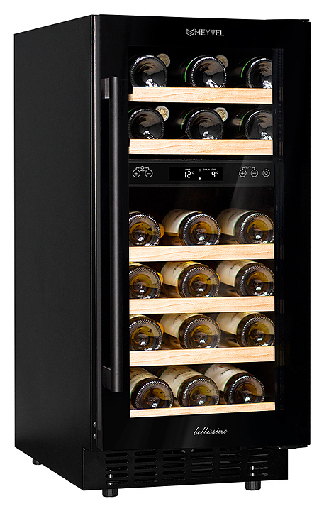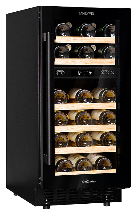 Винный шкаф MEYVEL MV28-KBT2 предназначен для демонстрации, хранения и создания оптимальных условий для сохранения всех вкусовых свойств вина в бутылках на предприятиях общественного питания, торговли, в барах, ресторанах, специализированных магазинах, частных домах или квартирах. Модель оснащена сенсорной панелью управления, 2 электронными термостатами и внутренней белой светодиодной подсветкой. Корпус и дверная ручка выполнены из окрашенной в черный цвет стали, дверь - из тройного стекла с УФ защитой с черной рамкой, полки - из массива бука. В комплект поставки входят петли для перенавешивания двери. Особенности: