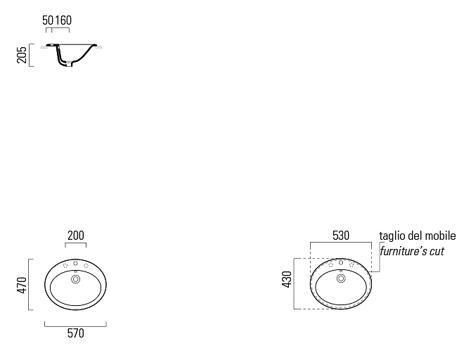 Раковина встраиваемая сверху GSI CITY MALISEON111 57х47х20,5 см, фаянс