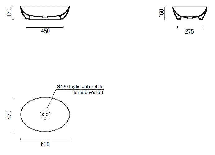 Раковина накладная GSI PURA 884211 60х42х16 см, фаянс