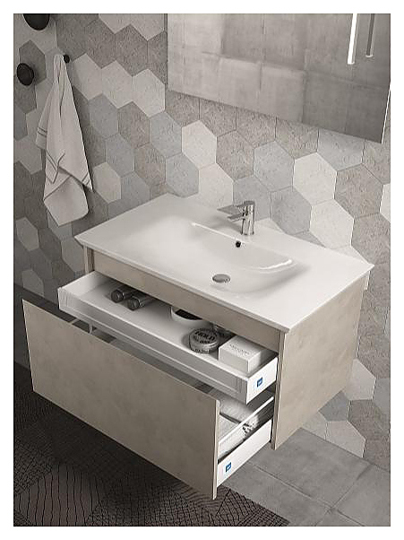 Тумба под раковину MARS 933 109 LEF 01 261 дополнит интерьер ванной комнаты. Благодаря подвесной конструкции модель не занимает много места, что позволяет экономить пространство, а также облегчает уборку. Модель оснащена выдвижным ящиком. Изделие выполнено из ламинированный ДСП V70 с полиуретановой кромкой, внутренняя поверхность ящика - с меламиновым покрытием. Выдвижной верхний ящик, раковина и смеситель в комплект поставки не входят. Дополнительные характеристики: