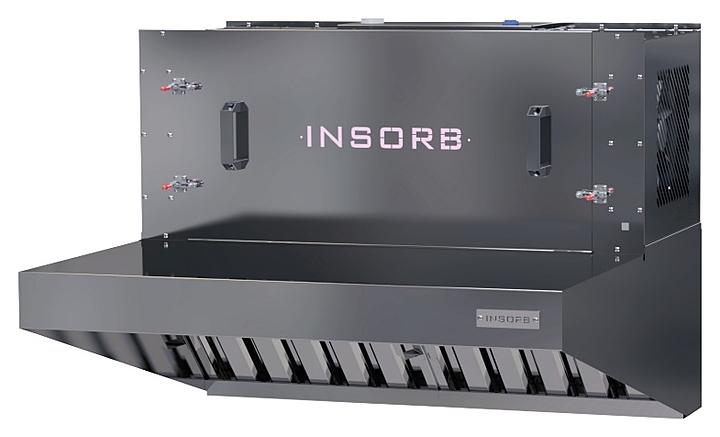 Зонт-рециркулятор INSORB JET 2000 предназначен для очистки воздуха от жира, примесей, микроорганизмов и характерных запахов ресторанной кухни на предприятиях пищевой промышленности, общественного питания и торговли путем улавливания адсорберами и разрушения с помощью окисления озоном вредных и пахучих соединений. Корпус выполнен из высококачественной нержавеющей стали марки AISI 304. В комплект поставки входит набор монтажных креплений. Особенности: