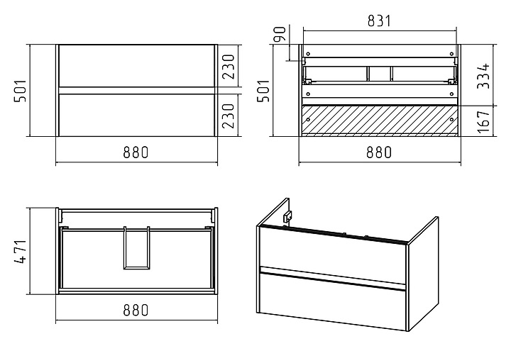 Тумба под раковину Misty Алиса-90 88х50 см, с 2 ящиками, подвесная, белая