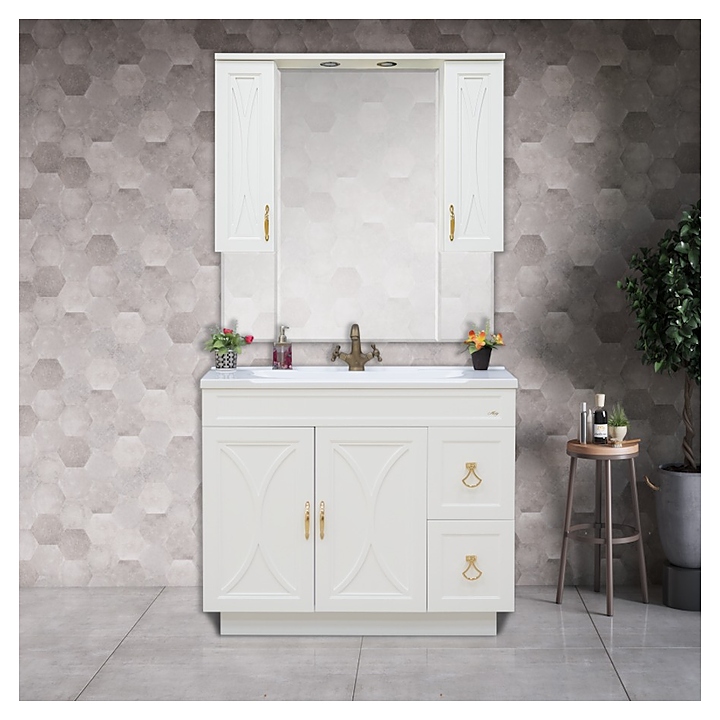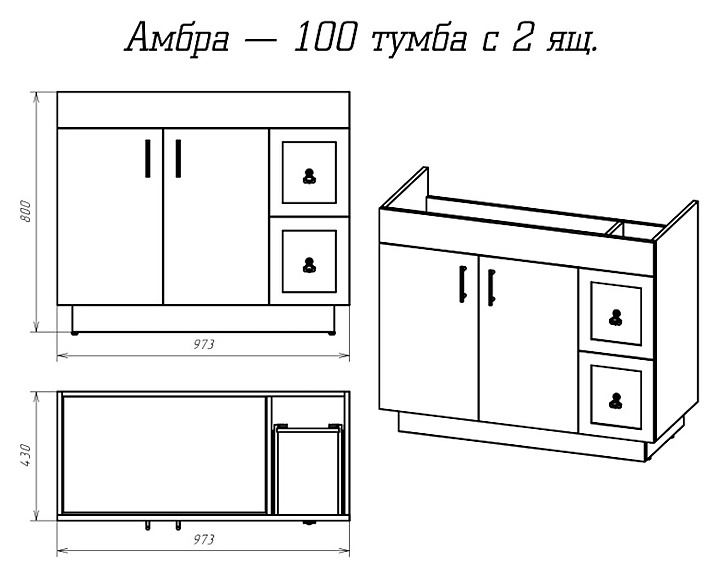Тумба под раковину Misty Амбра-100 97,3х80 см, с 2 ящиками, белая