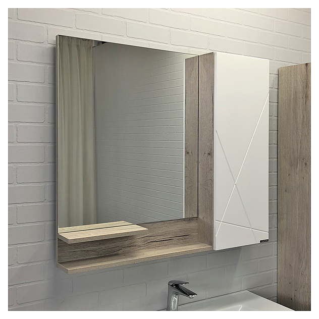 Зеркало Comforty Мерано-90 дополнит интерьер любой ванной комнаты. Благодаря подвесной конструкции модель не занимает много места, что позволяет экономить пространство в ванной комнате, а также облегчает уборку. Модель оснащена 2 открытыми полками в нижней части и шкафчиком с распашной дверцей. Корпус выполнен из влагостойкой ЛДСП, фасад - из МДФ. Дополнительные характеристики: