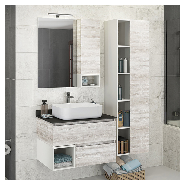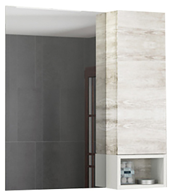 Зеркало Comforty Прага-75 дополнит интерьер любой ванной комнаты. Благодаря подвесной конструкции модель не занимает много места, что позволяет экономить пространство в ванной комнате, а также облегчает уборку. Модель оснащена открытой полкой в боковой части, шкафчиком и полкой внутри. Изделие выполнено из влагостойкой ЛДСП, зеркальное полотно - с амальгамой на основе серебра. Дополнительные характеристики: