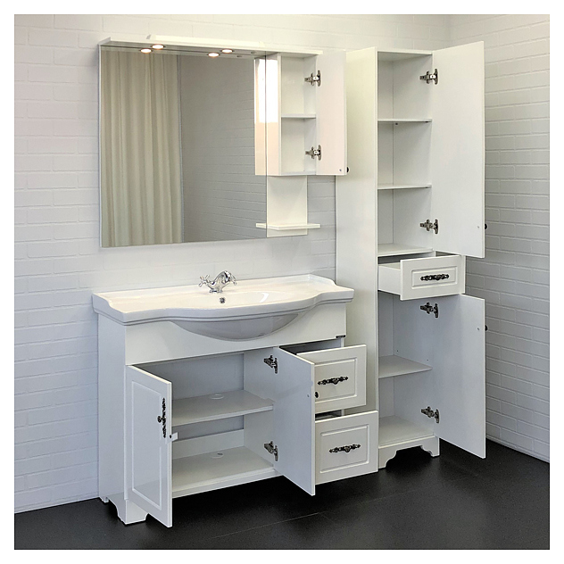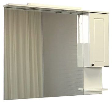 Зеркало Comforty Севилья-100 дополнит интерьер любой ванной комнаты. Благодаря подвесной конструкции модель не занимает много места, что позволяет экономить пространство в ванной комнате, а также облегчает уборку. Модель оснащена галогеновой подсветкой, открытой полкой в боковой части, шкафчиком и полкой внутри. Корпус выполнен из влагостойкой ЛДСП, фасад - из МДФ. Дополнительные характеристики: