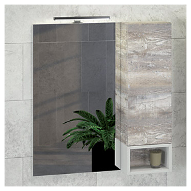 Зеркало Comforty Турин-75 дополнит интерьер любой ванной комнаты. Благодаря подвесной конструкции модель не занимает много места, что позволяет экономить пространство в ванной комнате, а также облегчает уборку. Модель оснащена открытой полкой в боковой части, шкафчиком с системой Push-to-open (открытие при нажатии) и полкой внутри. Изделие выполнено из влагостойкой ЛДСП, зеркальное полотно - с амальгамой на основе серебра. Дополнительные характеристики: