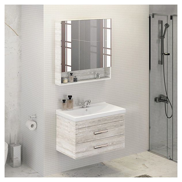 Шкаф зеркальный Comforty Никосия-80 80х80 см дуб белый