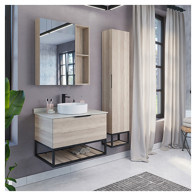 Зеркальный шкаф Comforty Порто-75 дополнит интерьер ванной комнаты. За счет подвесной конструкции изделие не занимает много места, что позволяет экономить пространство, а также облегчает уборку. Модель оснащена открытой полкой в боковой части, дверцей и 2 полками внутри. Корпус выполнен из влагостойкой ЛДСП. Дополнительные характеристики: