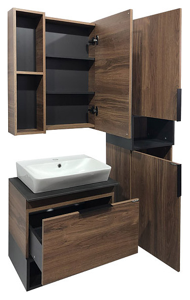 Зеркальный шкаф Comforty Штутгарт-60 дополнит интерьер ванной комнаты. За счет подвесной конструкции изделие не занимает много места, что позволяет экономить пространство, а также облегчает уборку. Модель оснащена открытой полкой в боковой части, дверцей и 2 полками внутри. Корпус выполнен из влагостойкой ЛДСП. Дополнительные характеристики: