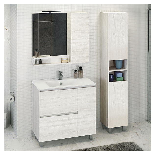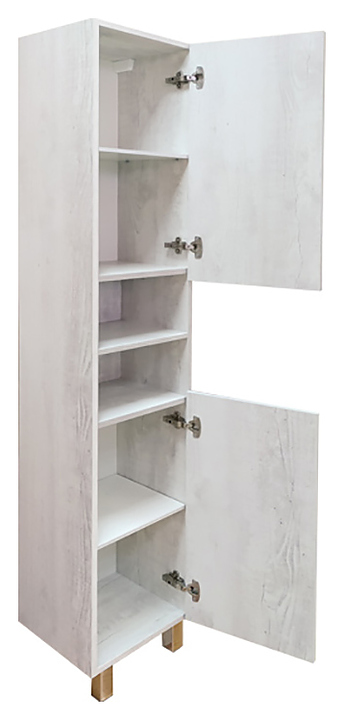 Шкаф-пенал Comforty Верона-35 Н дополнит интерьер ванной комнаты. Модель оснащена открытой полкой в средней части, 2 дверцами, ручкой, 2 полками внутри и ножками, защищающими конструкцию в случае намокания пола. Изделие выполнено из влагостойкой ЛДСП. Дополнительные характеристики: