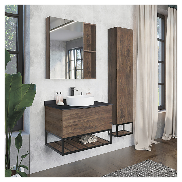 Шкаф-пенал Comforty Порто-35 дополнит интерьер ванной комнаты. Благодаря подвесной конструкции изделие не занимает много места, что позволяет экономить пространство в небольшой ванной комнате, а также облегчает уборку. Модель оснащена открытой полкой в нижней части, распашной дверью и 4 полками внутри. Изделие выполнено из влагостойкой ЛДСП. Дополнительные характеристики: