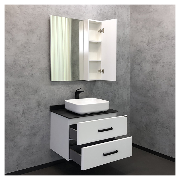 Тумба с раковиной ;Comforty Амстердам-75 дополнит интерьер ванной комнаты. Благодаря подвесной конструкции модель не занимает много места, что экономит пространство и облегчает уборку. Тумба оснащена 2 выдвижными ящиками. Корпус выполнен из влагостойкой ЛДСП, фасад - из МДФ, раковина - из санфарфора, обладающего повышенной прочностью и устойчивостью к негативным внешним факторам, а также долгое время сохраняет идеальную белизну и не впитывает запахи и грязь. В комплект входит раковина Comforty T-Y9378. Дополнительные характеристики:
