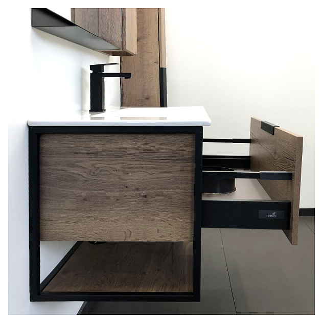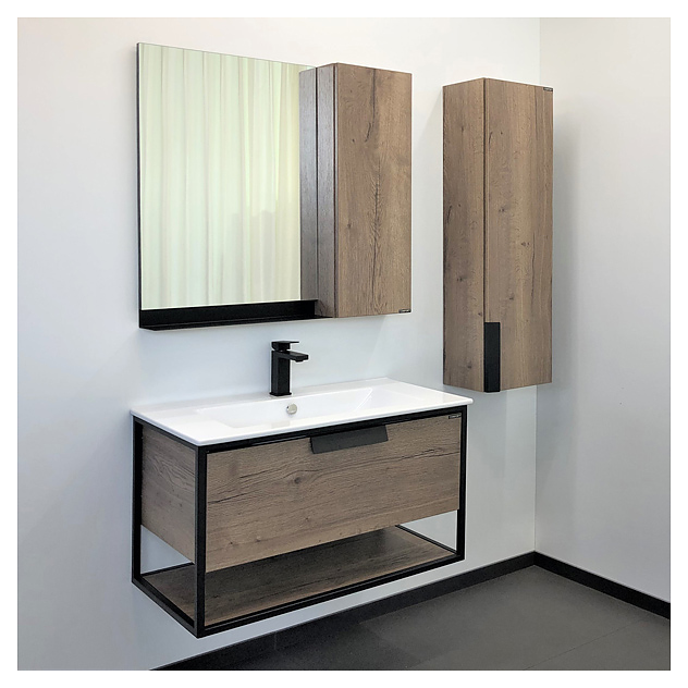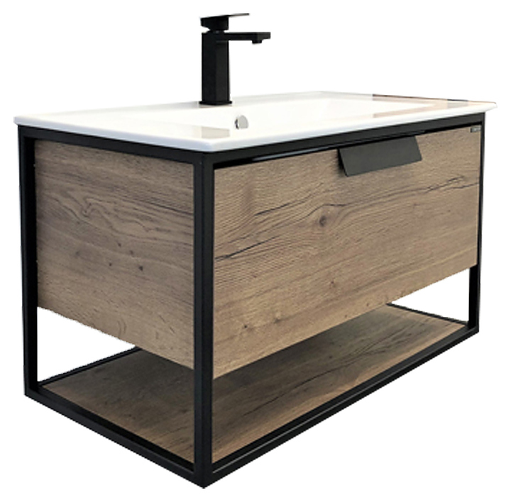 Тумба с раковиной Comforty Бонн-90 дополнит интерьер ванной комнаты. Благодаря подвесной конструкции модель не занимает много места, что экономит пространство и облегчает уборку. Тумба оснащена открытой полкой в нижней части и выдвижным ящиком плавного закрывания с ручкой. Раковина имеет слив-перелив. Тумба выполнена из влагостойкой ЛДСП, каркас - из стали, раковина - из санфарфора, обладающего повышенной прочностью и устойчивостью к негативным внешним факторам, а также долгое время сохраняет идеальную белизну и не впитывает запахи и грязь. В комплект входит раковина Sanita Luxe Quadro 90. Дополнительные характеристики: