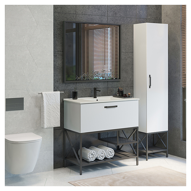 Тумба с раковиной Comforty Бредфорд-90 дополнит интерьер ванной комнаты. Тумба оснащена 2 открытыми полками в нижней части и выдвижным ящиком плавного закрывания с ручкой. Раковина имеет слив-перелив и одно отверстие для смесителя, расположенное по центру. Корпус выполнен из влагостойкой ЛДСП, фасад - из МДФ, каркас - из стали, раковина - из санфарфора, обладающего повышенной прочностью и устойчивостью к негативным внешним факторам, а также долгое время сохраняет идеальную белизну и не впитывает запахи и грязь. В комплект входит белая раковина Comforty 90E. Дополнительные характеристики: