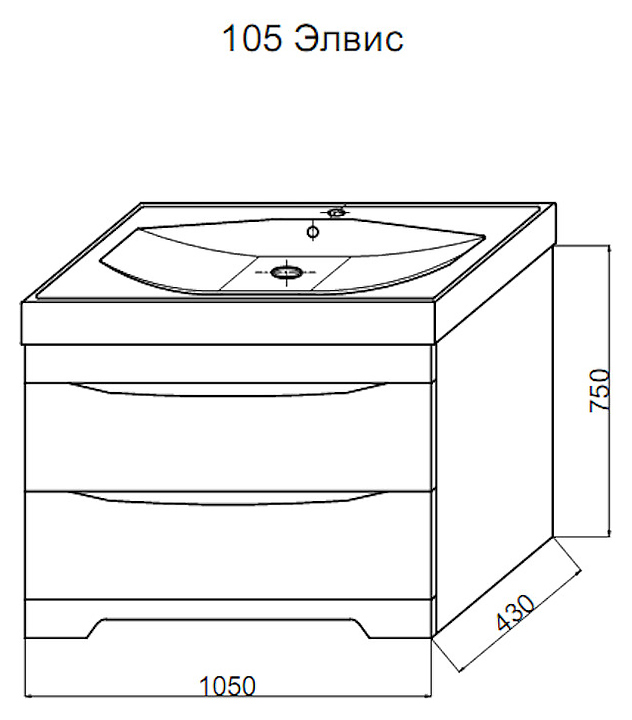 Тумба под раковину Misty Элвис-105 100,3х73,5 см, с 2 ящиками, белая