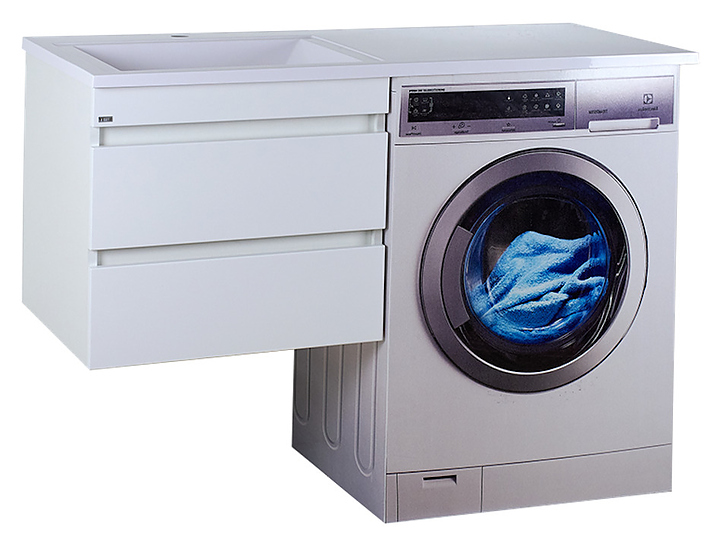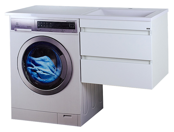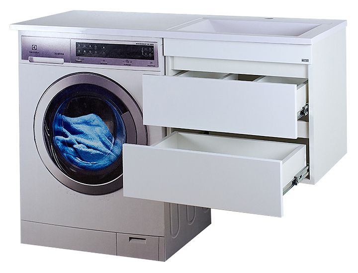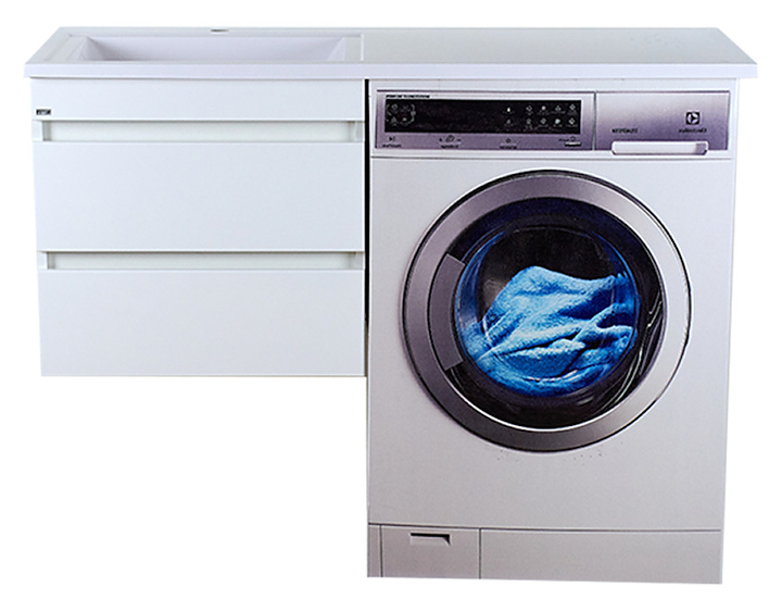 Тумба под раковину Misty Фостер-55 55х46 см, под стиральную машину, с 2 ящиками, подвесная, белая