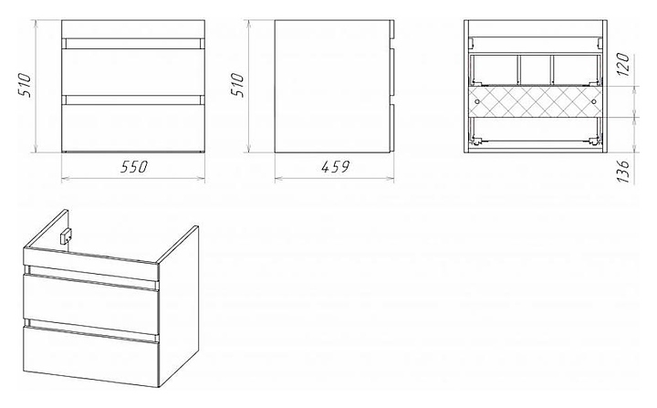 Тумба под раковину Misty Фостер-55 выполнена в современном стиле и идеально впишется в интерьер любой ванной комнаты. Благодаря подвесной конструкции изделие не занимает много места, позволяет экономить пространство и облегчает уборку. Модель оснащена 2 выдвижными ящиками с шариковыми направляющими. Корпус изделия выполнен из ЛДСП, фасад - из МДФ с покрытием эмалью. Тумба может использоваться с раковиной Универсал Гавана 120 левая и Гавана 120 правая. Комплектация: