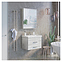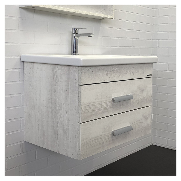 Тумба с раковиной Comforty Никосия-70П дополнит интерьер ванной комнаты. Благодаря подвесной конструкции модель не занимает много места, что экономит пространство и облегчает уборку. Тумба оснащена 2 выдвижными ящиками плавного закрывания. Раковина имеет широкую заднюю поверхность для размещения аксессуаров, слив-перелив и отверстие для смесителя, расположенное по центру. Изделие выполнено из влагостойкой ЛДСП, раковина - из санфарфора, который обладает повышенной прочностью и устойчивостью к негативным внешним факторам, а также долгое время сохраняет идеальную белизну и не впитывает запахи и грязь. В комплект входит раковина Como 70. Дополнительные характеристики: