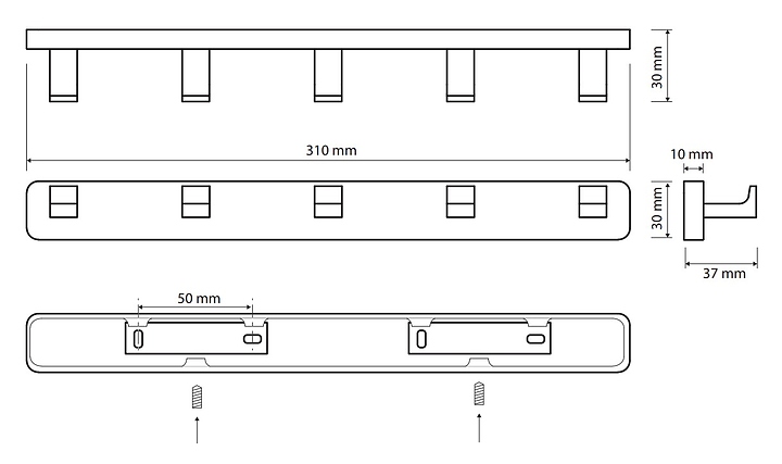Вешалка-планка с 5-ю крючками Bemeta Via 135006252