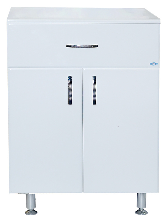 Тумба под раковину Misty Люси-60 выполнена в современном стиле и идеально впишется в интерьер любой ванной комнаты. Напольная конструкция обеспечивает легкий монтаж и не требует специального ремонта в помещении. Модель оснащена закрытым отделением с распашной дверцей и отделением с бельевой корзиной, а также выдвижным ящиком с роликовыми направляющими. Корпус изделия выполнен из ЛДСП, фасад - из МДФ с покрытием эмалью, полки - из ЛДСП. Комплектация: