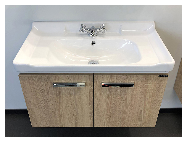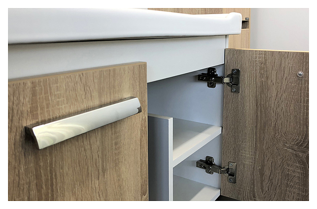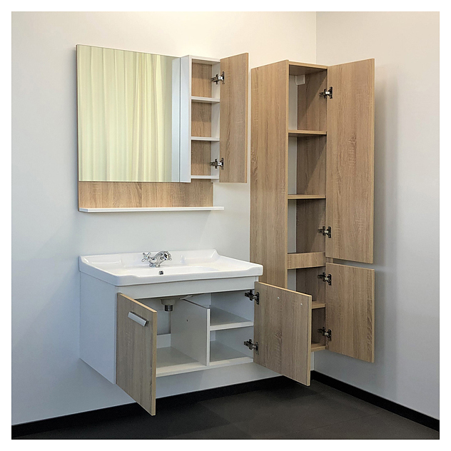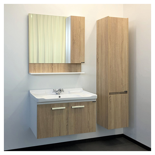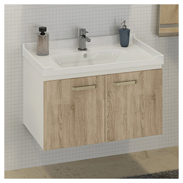 Тумба с раковиной Comforty Рига-80 дополнит интерьер ванной комнаты. Благодаря подвесной конструкции модель не занимает много места, что экономит пространство и облегчает уборку. Тумба оснащена 2 распашными дверцами плавного закрывания и полкой внутри. Раковина имеет широкие боковые и заднюю поверхности, слив-перелив и отверстие для смесителя, расположенное по центру. Корпус выполнен из влагостойкой ЛДСП, фасад - из МДФ, раковина - из санфарфора, который обладает повышенной прочностью и устойчивостью к негативным внешним факторам, а также долгое время сохраняет идеальную белизну и не впитывает запахи и грязь. В комплект входит раковина Comforty 9335-80. Дополнительные характеристики: