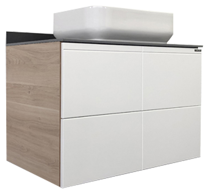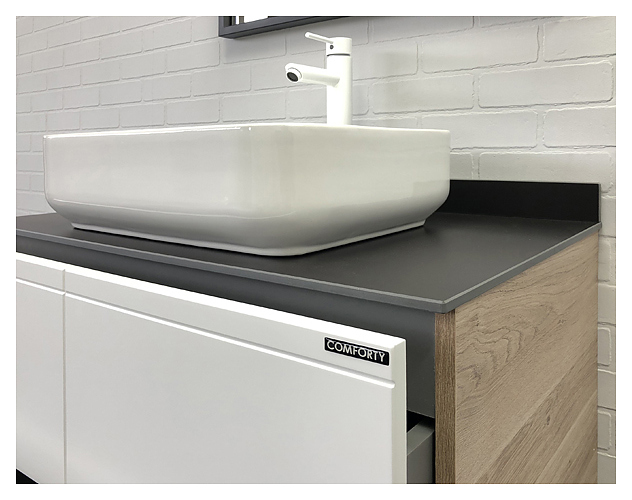Тумба с раковиной Comforty Таллин-80 дополнит интерьер ванной комнаты. Благодаря подвесной конструкции модель не занимает много места, что экономит пространство и облегчает уборку. Модель оснащена 2 выдвижными ящиками с системой открытие при нажатии Push-to-open. Корпус выполнен из влагостойкой ЛДСП, фасад - из МДФ, столешница - из керамогранита, раковина - из санфарфора, который обладает повышенной прочностью и устойчивостью к негативным внешним факторам, не впитывает запахи и грязь. В комплект входит раковина Comforty T-Y9378. Дополнительные характеристики: