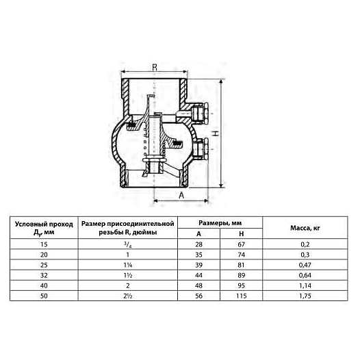 Клапан обратный DANFOSS осевой 223 Ду 40 Ру16 Тмакс=80 оС НР 2 1/2" диск латунь с аксиальным затвором