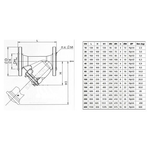 Фильтр сетчатый Tecofi Y-образный чугун Ду 50 Ру16 Тмакс=300 oC фл F3240N