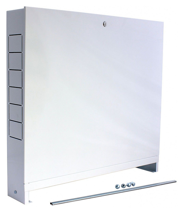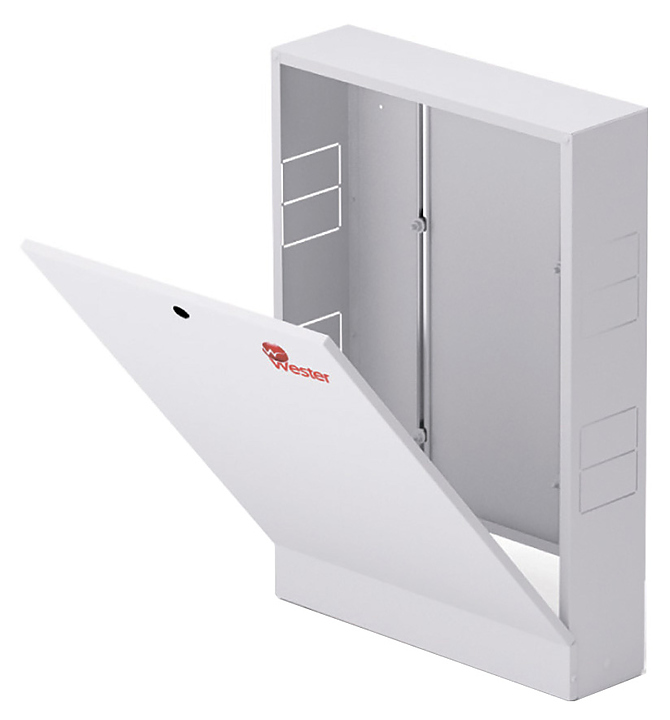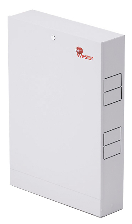 Шкаф коллекторный Wester ШРН-6 предназначен для наружного монтажа коллекторных узлов систем отопления, горячего и холодного водоснабжения. Модель оснащена съемной дверцей с внутренним замком для защиты от несанкционированного доступа и креплением к полу и стене. Корпус шкафа выполнен из оцинкованной стали. Передняя панель окрашена порошковой краской RAL 9016 с предварительным нанесением фосфатной пленки, защищающей от коррозии. В комплект поставки входит комплект креплений и паспорт изделия. Особенности: