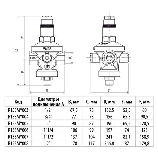Регулятор давления Giacomini мембранный латунь R153M Ду 32 Ру25 1 1/4" ВР Рн=1,5 - 7бар с выходом под манометр