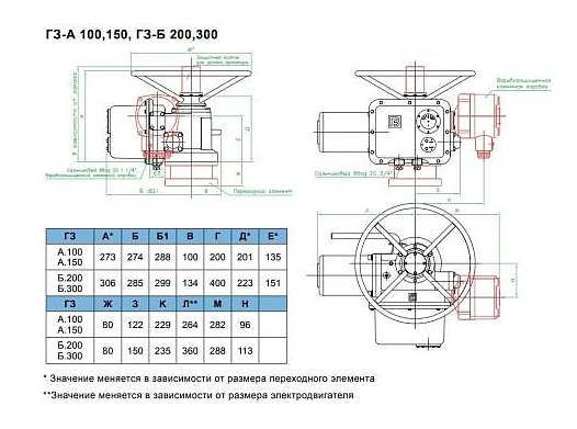 Привод электрический ГЗ Электропривод ГЗ-А100/24 А используется для управления запорной промышленной трубопроводной арматуры, устанавливаемой в помещениях, под навесом и на открытом воздухе. Электропривод состоит из электродвигателя, червячного редуктора, двухсторонней муфты ограничения крутящего момента (моментной муфты), ограничителя хода выходного вала, маховика ручного дублера, выходного вала с кулачками для присоединения к затвору арматуры и корпусных деталей. Особенности: