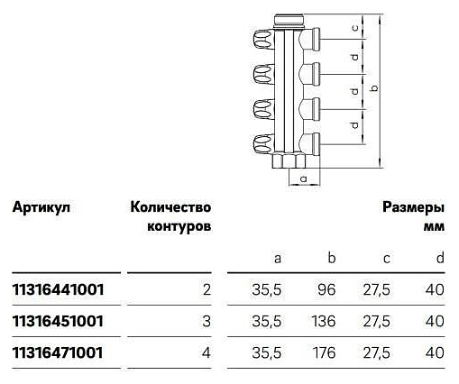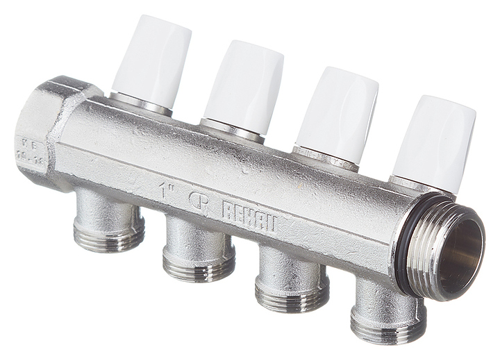 Коллектор Rehau 11316471001 1" ВР/НР на 4 вых 3/4" НР м/о 40мм под евроконус с запорно-регулирующими клапанами