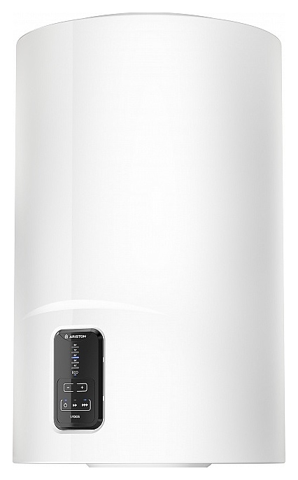 Электрический накопительный водонагреватель Ariston LYDOS ECO ABS PW 80 V используется в местных системах водоснабжения для постоянного автономного обеспечения горячей водой одной или нескольких точек водоразбора таких как санитарные узлы, кухни в жилых и загородных частных домах, а также других бытовых и хозяйственных объектах. Модель оснащена внутренним баком, погружным трубчатым электронагревателем (ТЭНом) с фланцевым креплением, резьбовыми штуцерами для подвода холодной и выхода горячей воды, стержневым термостатом, кабелем питания с вилкой и электронной панелью управления со светодиодным интерфейсом в стиле hi-tech. Вертикально ориентированный корпус цилиндрической формы выполнен из металла с антикоррозийным покрытием белого цвета и нижней крышкой черного цвета, внутненний бак – из стали, термоизоляция – из полиуретана высокой плотности. В комплект поставки входят монтажный кронштейн, заводская упаковка, инструкция по эксплуатации и гарантийный талон. Особенности: