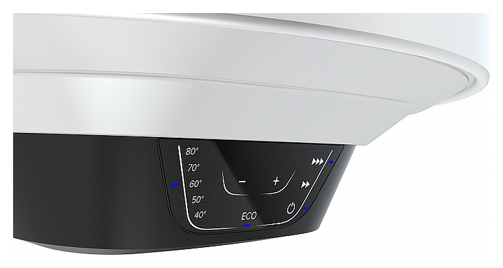 Электрический накопительный водонагреватель Ariston PRO1 ECO INOX ABS PW 80 V используется в местных системах водоснабжения для постоянного автономного обеспечения горячей водой одной или нескольких точек водоразбора таких как санитарные узлы, кухни в жилых и загородных частных домах, а также других бытовых и хозяйственных объектах. Модель оснащена внутренним баком, погружным трубчатым электронагревателем (ТЭНом) с фланцевым креплением, резьбовыми штуцерами для подвода холодной и выхода горячей воды, стержневым термостатом, кабелем питания с вилкой и электронной панелью управления с цифровым дисплеем. Вертикально ориентированный корпус цилиндрической формы выполнен из металла с антикоррозийным покрытием белого цвета и нижней крышкой черного цвета, внутненний бак – из нержавеющей стали, термоизоляция – из полиуретана высокой плотности. В комплект поставки входят монтажный кронштейн, заводская упаковка, инструкция по эксплуатации и гарантийный талон. Особенности: