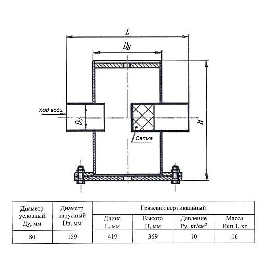 Грязевик КАЗ верт сталь Ду 80 Ру10 п/привар
