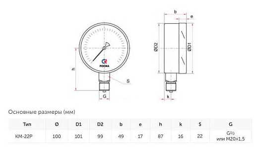 Манометр радиальный Росма КМ-22Р 00000002253