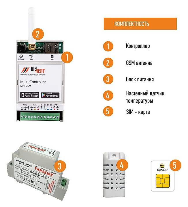Термостат ЭВАН MY HEAT GSM 6282 предназначен для управления и контроля в удаленном режиме всех параметров работы систем отопления в квартирах с индивидуальным отоплением и небольших частных домовладениях, сбора и хранения информации о нештатных ситуациях, об ее ошибках и SMS и Push оповещение о них. В комплект поставки входит контроллер, проводной комнатный датчик температуры, блок питания, GSM Антенна, SIM карта (Билайн). Особенности: