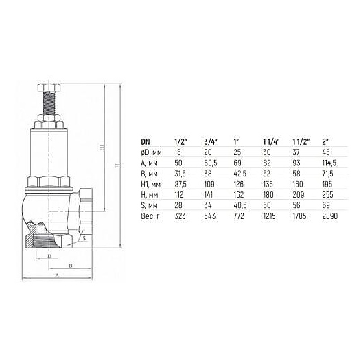 Клапан предохранительный Benarmo Ду50х50 Ру16 ВР/ВР Рн=1...16бар автоподрыв