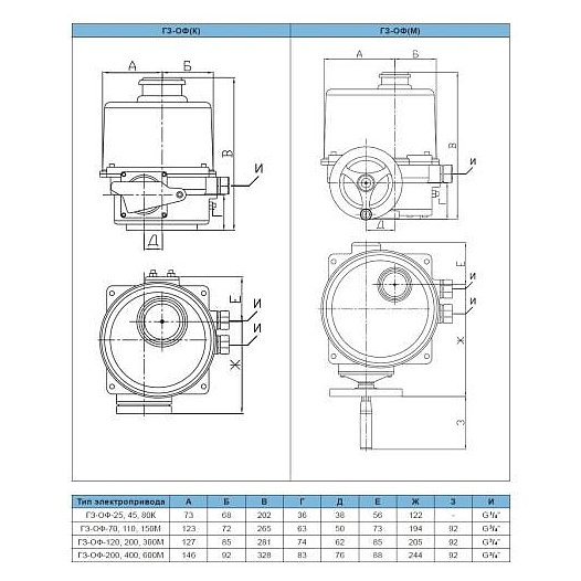 Привод электрический ГЗ Электропривод ГЗ-ОФ-80/21К F07 используется для управления запорной промышленной трубопроводной арматуры, устанавливаемой в помещениях, под навесом и на открытом воздухе. Особенности: