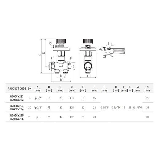 Клапан балансировочный Giacomini автомат R206C-1 Ду 25 Ру25 ВР Kvs=4.15м3/ч R206CY225