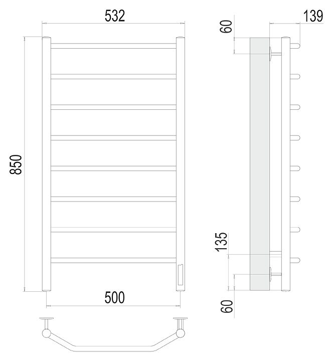 Полотенцесушитель электрический Terminus Виктория 8П 50х85 см, со встроенным диммером справа